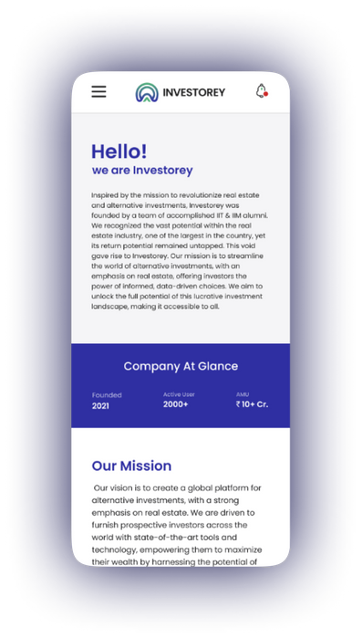 The Homepage introduced Investorey’s services in a clear, approachable way, guiding users to explore product categories, browse featured opportunities, and try out the wealth calculator. Simplified messaging and uncluttered layouts make the platform easier to understand, while well-placed calls-to-action encourage sign-ups and deeper engagement.